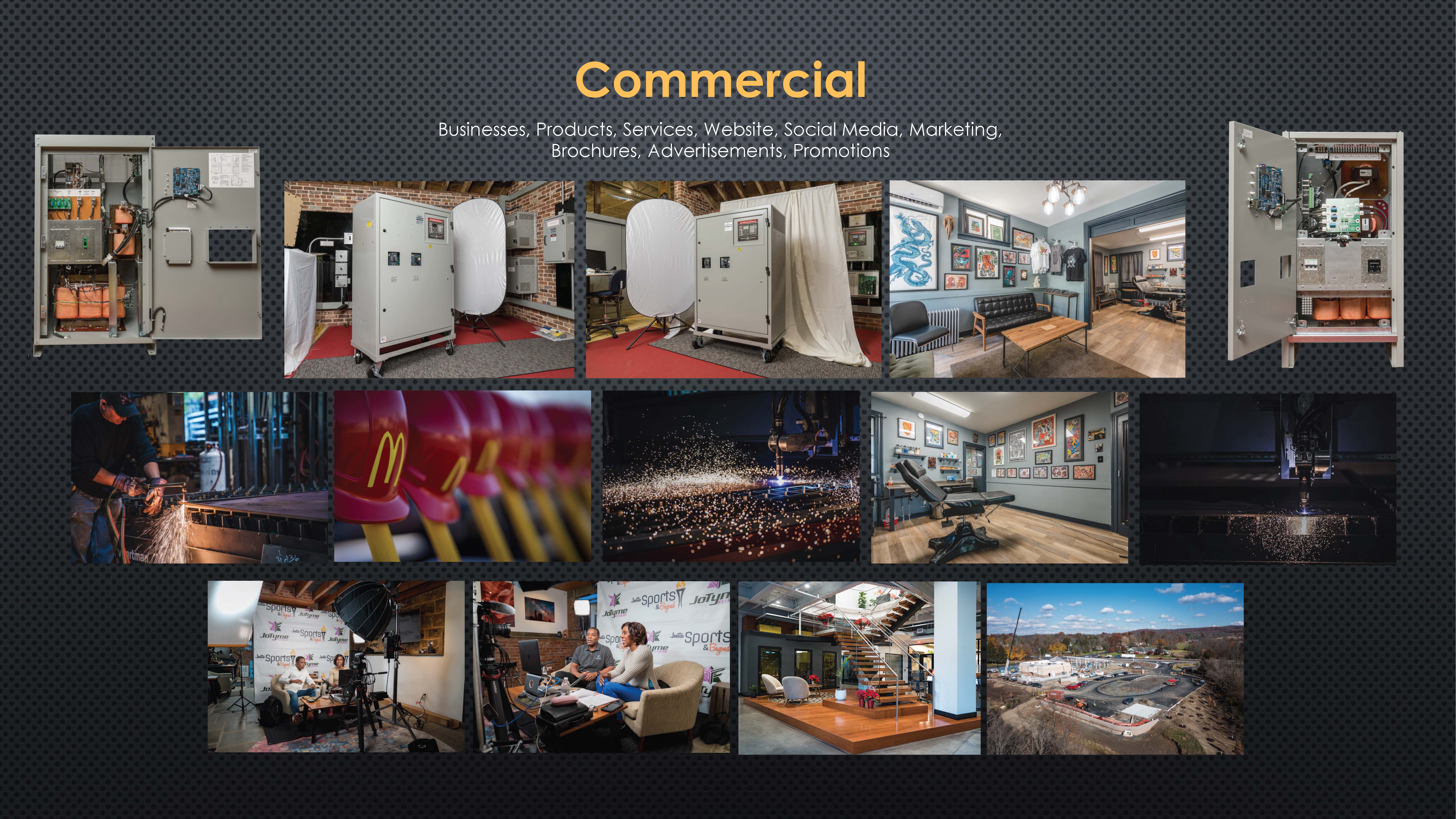 Professional imagery for businesses, real estate and individuals including headshots, portraits, and products in the photo studio or on location, for commercial or personal events and aerial drone pictures.