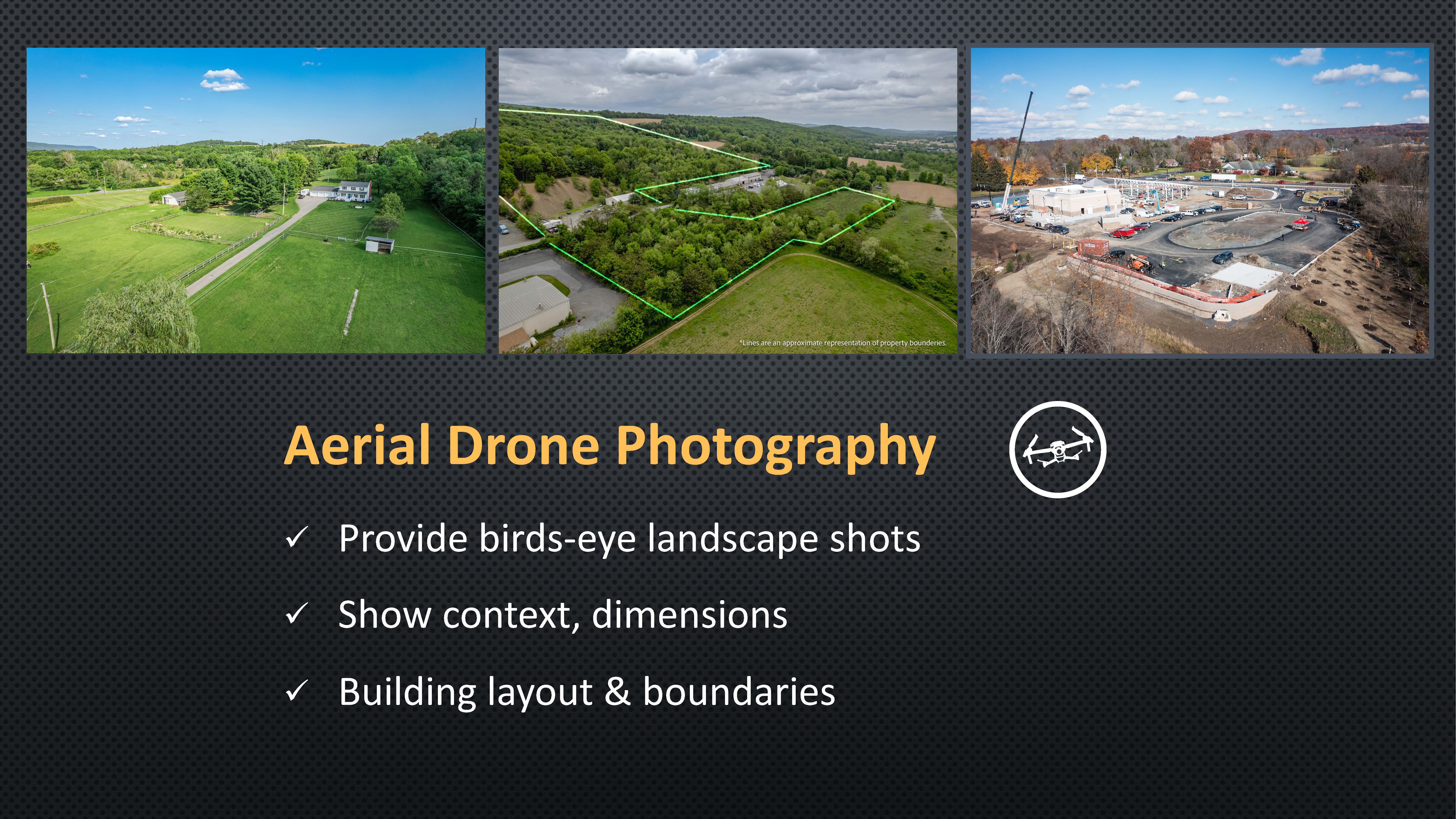 Aerial footage and imagery for commercial, real estate or event photos and videos. FAA licensed and insured drone cinematography, time-lapse, UHD & 4k Video.